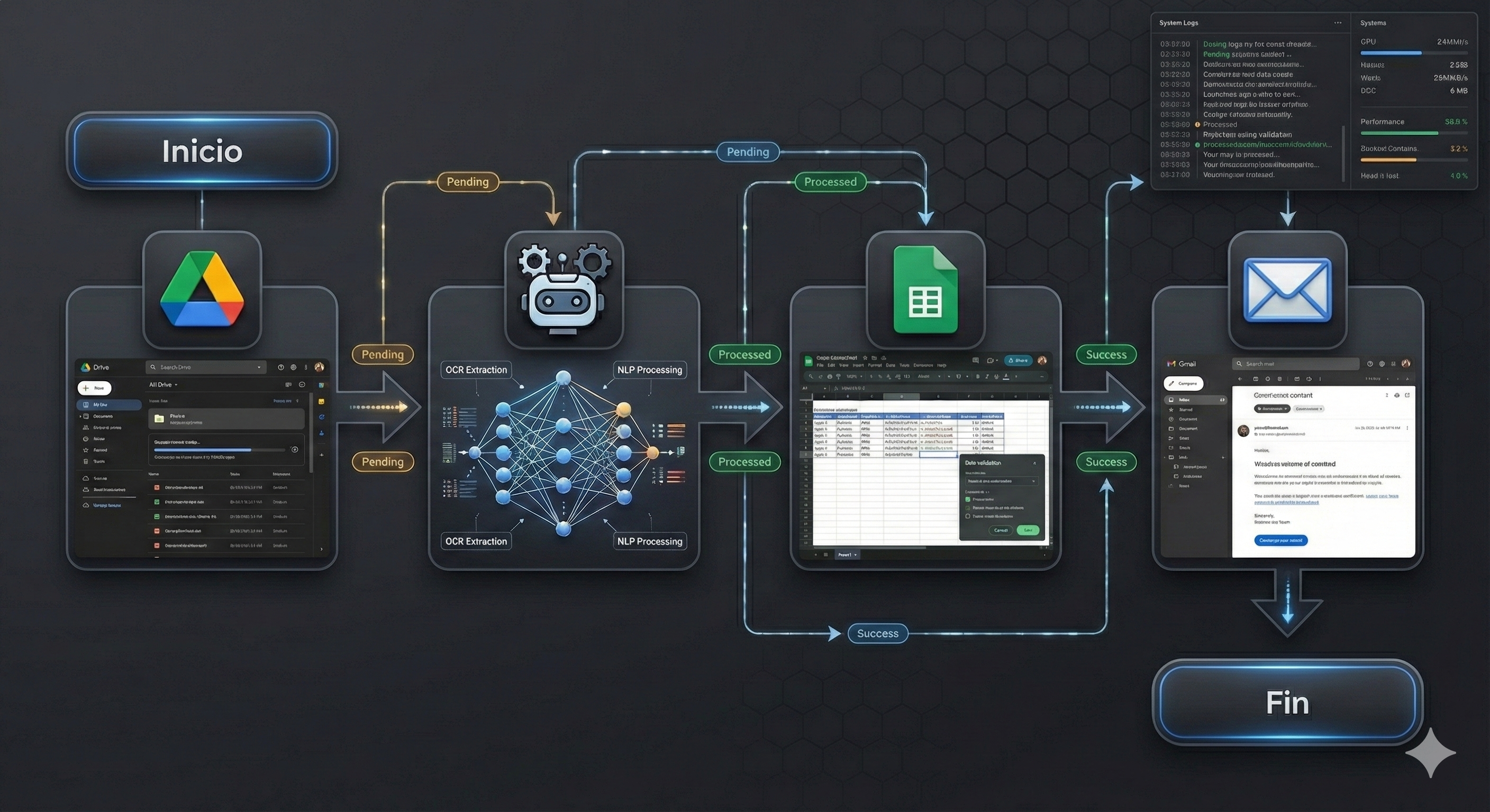 Implementamos sistemas que organizan y responden tus correos automáticamente, para que nunca pierdas un cliente o una oportunidad.